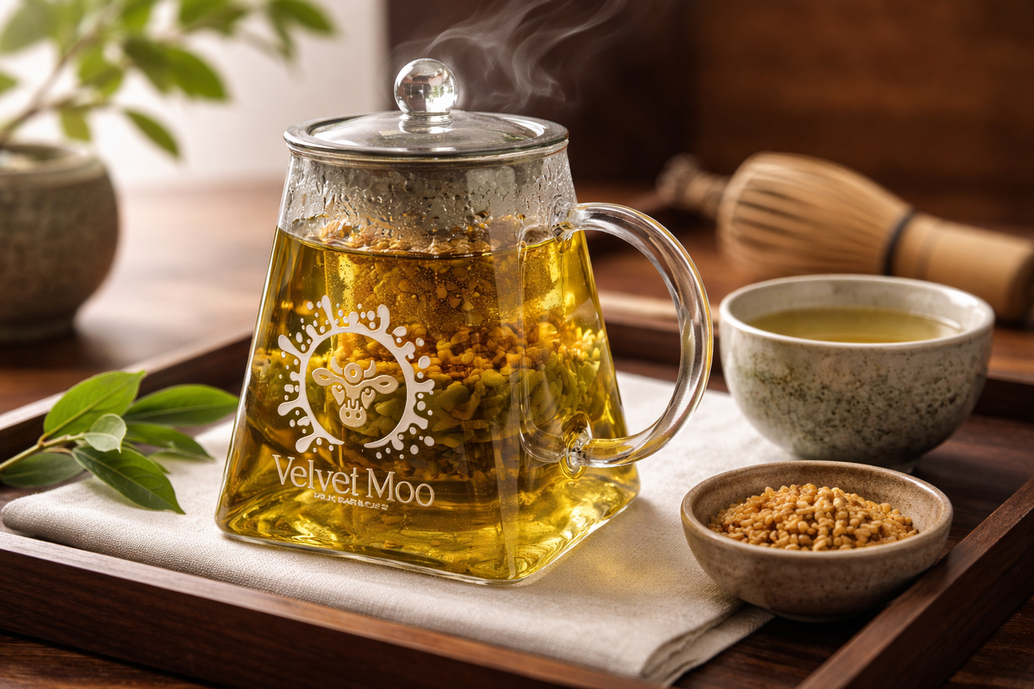 A soothing Japanese green tea blended with lightly toasted brown rice, offering a warm, nutty aroma and a smooth, balanced cup. Gentle grassy notes meet comforting roasted depth, creating a naturally calming tea that is light, wholesome, and quietly elegant.