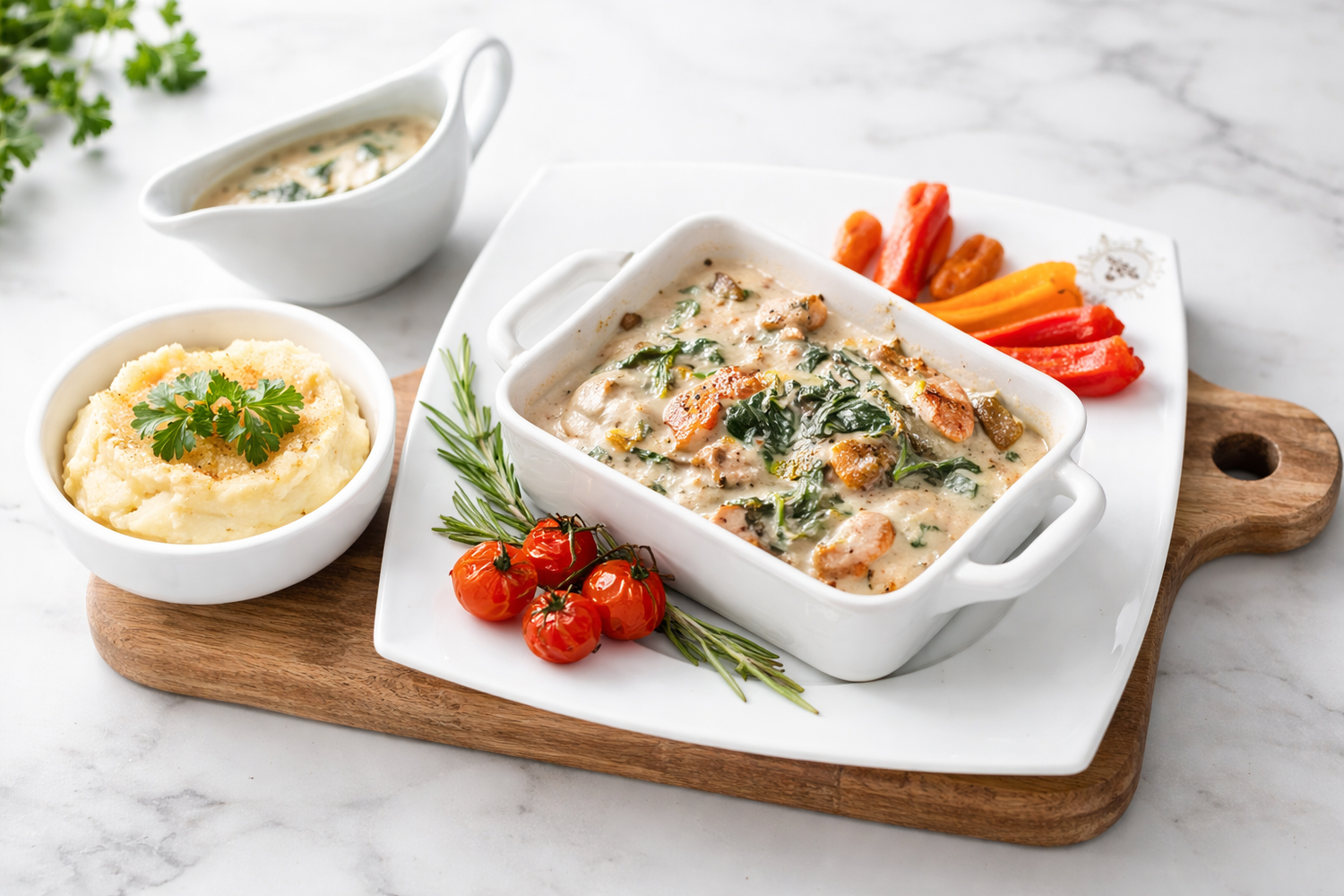 Tender chicken pieces simmered in a luxurious Jersey cream sauce (5.8% fat), infused with garden herbs and a touch of garlic. Served with seasonal vegetables, each bite is rich, velvety, and deeply satisfying. Naturally high in protein, this dish offers comforting indulgence with elegance warm, flavorful, and unmistakably VelvetMoo.