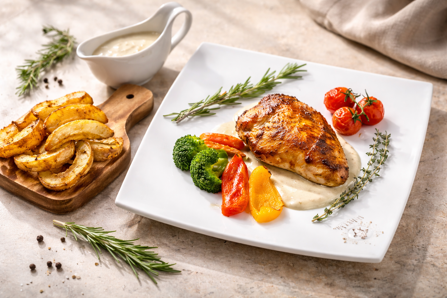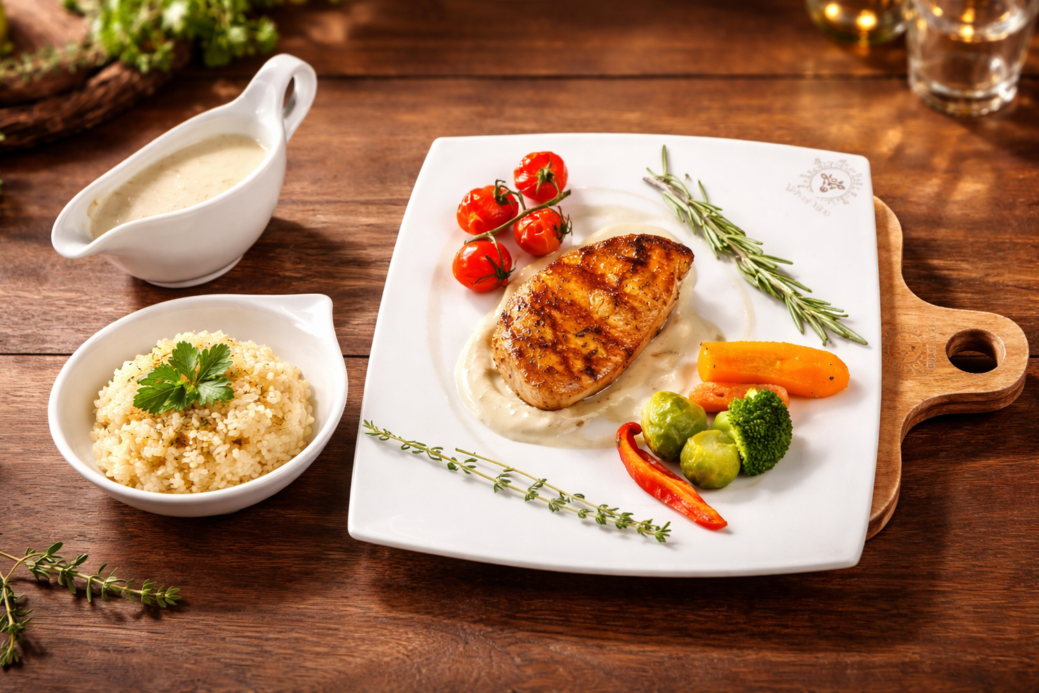 Golden-grilled chicken breast, tender and juicy, served with a delicate Creamoo Cherry Tomato Sauce made from rich Jersey milk (5.8% fat). Each bite highlights the natural flavor of the chicken, balanced with the subtle sweetness of cherry tomatoes and creamy indulgence. Naturally high in protein, this dish is simple, refined, and deeply satisfying wholesome, elegant, and unmistakably VelvetMoo.
