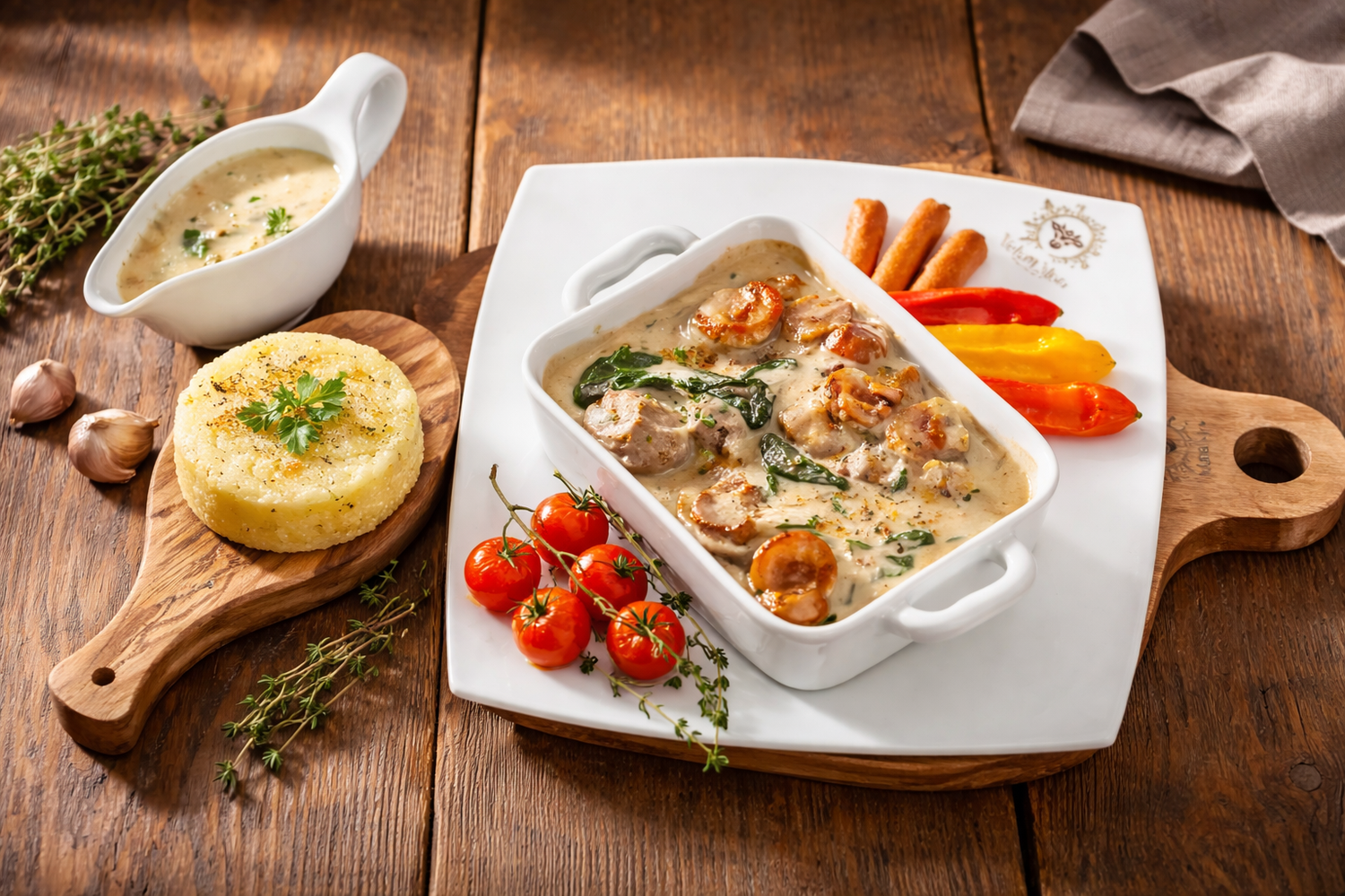 Juicy, marinated chicken thigh, expertly grilled to achieve a golden, flavorful crust while remaining tender inside. Served with a silky Creamoo Sauce made from rich Jersey milk (5.8% fat), each bite is savory, aromatic, and deeply satisfying. Naturallyhigh in protein, this dish combines comfort and elegance hearty, refined, and unmistakably VelvetMoo